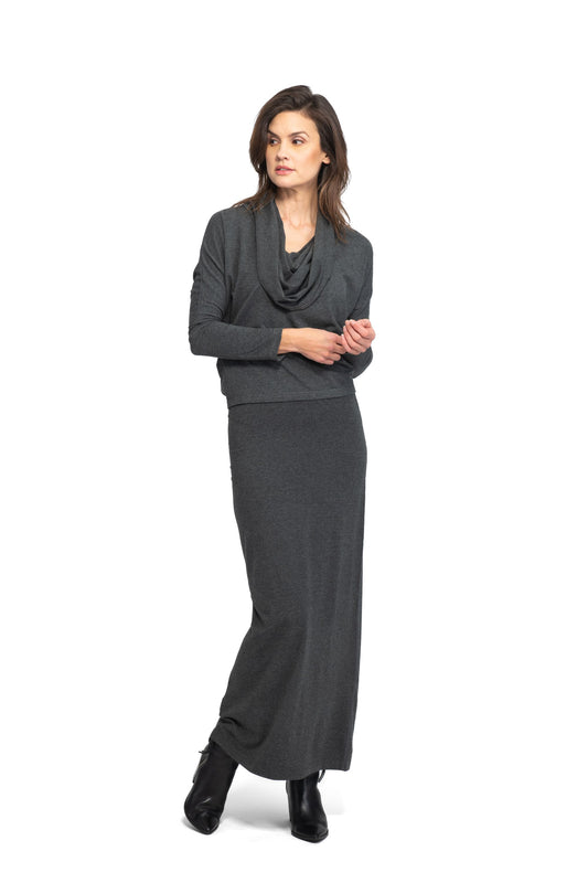A tip: Choose a reversible colour item first. Bottoms are best, but you can also choose one of our reversible colour tops and create a look from there. Then choose one MODULAR top that is in the same colour way, and another that is a contrast for some pop! The piece that is the same or similar in colour (with one of the two colour REVERSIBLE items) will create a single silhouette, ie: turning a skirt and top into a dress.