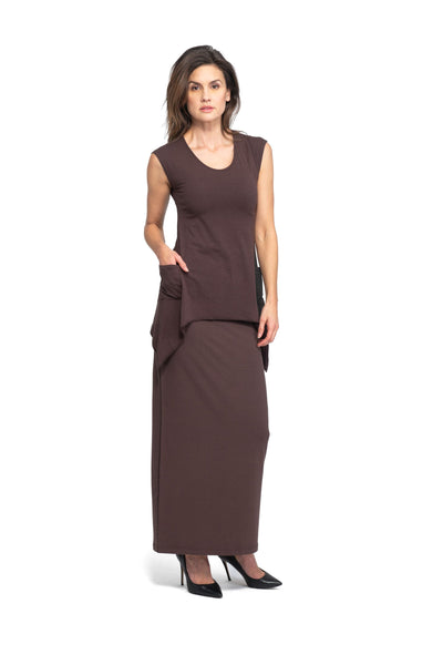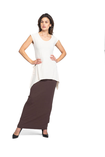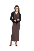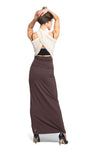 This MODULAR REVERSIBLE super comfy, slim fitting maxi skirt has a double-sided, double colour waist band to create multiple looks worn as a skirt, as a dress and reversed for a contrast colour waistband or bodice.