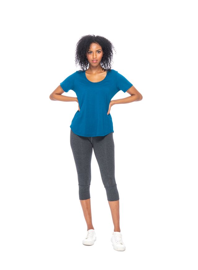 This REVERSIBLE front to back, perfect short sleeve T has a flattering U neck and U hem and can be worn back to front, for a higher neck and a U back.